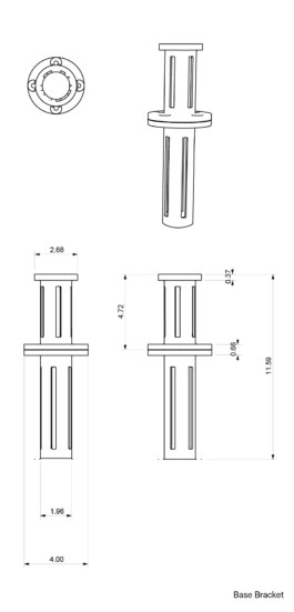 The base bracket serves two purposes. It holds the mast in place and contains nylon fabric that pulls water up from the reservoir through osmosis, thereby keeping the lowest basket watered.