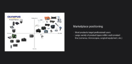 Olympus is a legacy brand in the professional digital camera market. While Olympus has good name recognition among photographers, competitors like Canon and Nikon dominate important segments like DSLRs with 94% market share. The O-1 realigns the brand with its target customer - professional photographers - by moving into a new category: medium-format, mirrorless cameras.